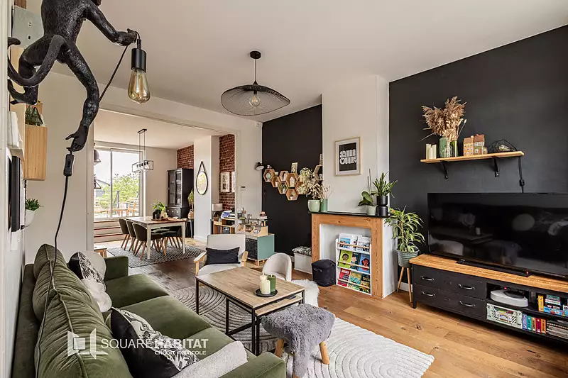 Sur la commune de Saint-André-Lez-Lille, Square Habitat vous présente en exclusivité cette superbe maison Large 1930 rénovée avec beaucoup de goût. Le rez-de-chaussée comprend un hall d'entrée, un vaste garage d'environ 36m2 et une buanderie donnant accès au jardin. Le 1er étage se compose d'une belle pièce à vivre et sa cuisine ouverte donnant sur une superbe terrasse et de toilettes. Aux derniers étages vous trouverez 4 chambres dont une avec sa salle de douche et une salle de bains avec toilettes. Un grand jardin et des dépendances (au choix rangement, bureau, salle de jeux, etc...) complètent ce descriptif. Au total environ156m2 utiles, buanderie env. 13m2, garage env. 36m2. Un bien coup de coeur à ne pas manquer! CE BIEN BENEFICIE DE LA GARANTIE REVENTE 7 ANS - VISITE VIRTUELLE DISPONIBLE SUR DEMANDE. Les informations sur les risques auxquels ce bien est exposé sont disponibles sur le site Géorisques : www. georisques.gouv.fr