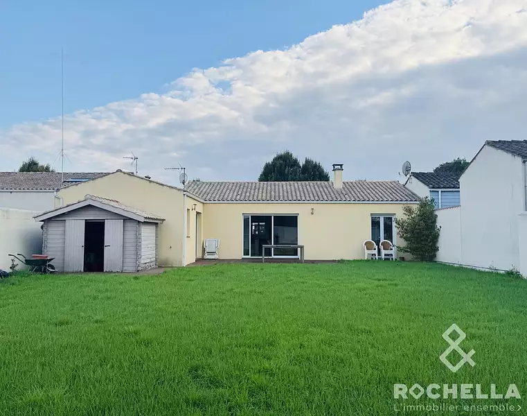 En EXCLUSIVITE chez Rochella Immobilier, maison de plain pied construite en 2007 de 120m² avec 3 chambres, garage et jardin sur belle parcelle de 690m².