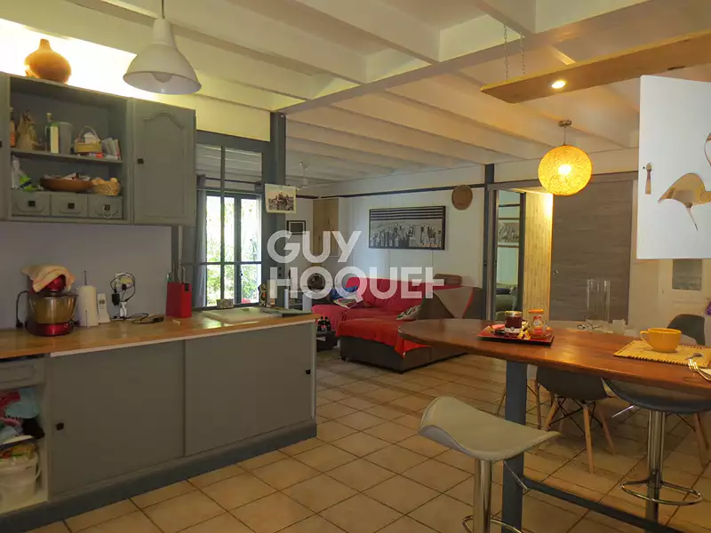 Dans un environnement calme à proximité des commodités, maison de plain pied de 7 pièces principales, d'une superficie habitable d'environ 120 m², édifiée sur une parcelle de 770 m². Elle est composée d'une cuisine ouverte sur le séjour donnant accès à la salle à manger, trois chambres, un bureau, une buanderie, une salle d'eau, wc séparé. Varangues, cuisine au feu de bois. Toiture neuve. Parking couvert. Travaux de rafraichissement à prévoir. Possibilité d'agrandissement et de rentrer plusieurs véhicules. Honoraires à la charge du vendeur. Contactez-nous au 0692 70 60 70 Vivien Parolari (EI) Agent Commercial - Numéro RSAC : 879158327 - Saint Denis de la Réunion.