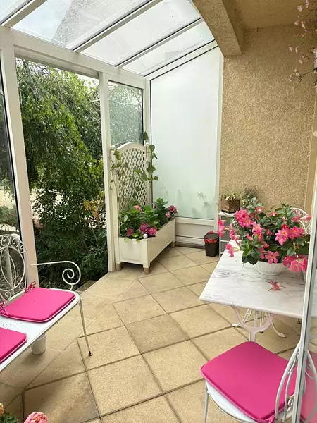 Le jardin, entretenu régulièrement par un jardinier, offre un cadre verdoyant et agréable. Il comprend une belle terrasse, deux grands abris de jardin, ainsi qu’un espace bétonné prêt à accueillir une piscine.