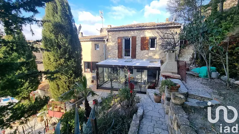 iad France - Anne Geiskopp vous propose: VILLENEUVE-LES-CORBIERES - CHARMANTE MAISON EN PIERRE AVEC TERRAIN ET VUE PANORAMIQUE