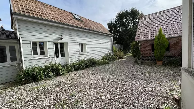 Au cur de la vallée de la Bresle, venez découvrir cette maison atypique pleine de charme, située à Beauchamps (80770). Issue de la réunion de deux habitations mitoyennes, elle offre une configuration originale et des volumes surprenants. Elle dispose de deux entrées, deux coins cuisine, dun agréable salon-séjour surplombé par une mezzanine/chambre, ainsi que de 3 chambres supplémentaires de tailles variées et un grand palier/bureau. La surface habitable est de 121 m² (surface au sol 154 m²) Côté extérieur, vous profiterez de bâtiments annexes, dun garage de 30 m² et dun auvent/carport pratique pour stationner. Mais le véritable atout de ce bien reste son grand terrain arboré avec accès direct à la rivière La Bresle, véritable paradis pour les pêcheurs et les amoureux de la nature. Surface totale parcelle 1154 m² Nous vous rappelons que suite à l'article l.561-5 du code monétaire et financier, la copie de la pièce d'identité de tous les visiteurs vous sera demandée avant la visite. Honoraires : 12 000 TTC (6,94 %) inclus charge acquéreur (173 000 hors honoraires) Agent Commercial E.I. : Patricia POCHON 06.58.23.31.85 RSAC N° 433 567 716