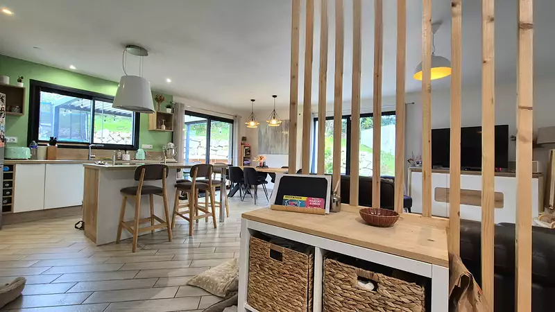 Moi, c’est la maison construite en 2018. J’ai été pensée pour la vraie vie. Celle des repas partagés, des jeux d'enfants, du calme retrouvé. Chauffage au sol, clim, volets domotisés, alarme, aspiration centralisée… ici, le confort est une évidence.