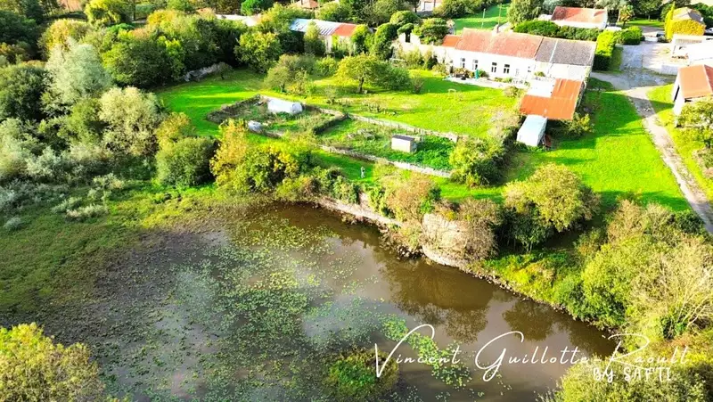 À l’extérieur, le terrain d’environ deux hectares accueille un étang 7000m² et près de 400m² de dépendances, dont une partie déjà dallée, laissant place à de multiples projets. Le chauffage par géothermie et l’assainissement neuf viennent parfaire les prestations de ce bien rare, situé dans un environnement paisible et verdoyant.