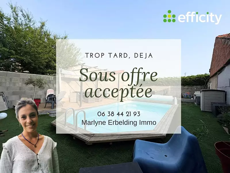 EFFICITY, l'agence qui estime votre bien en ligne, et Marlyne ERBELDING vous proposent de découvrir cette maison rénovée, située dans un quartier résidentiel calme, avec un terrain à l'arrière sans vis-à-vis, un garage, une piscine, et cinq chambres.