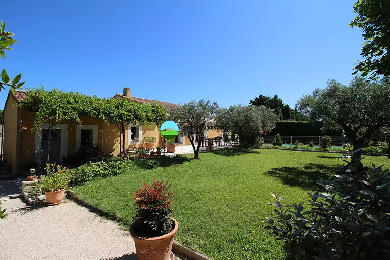 Vous cherchez une maison en parfait état et prête à vous accueillir sans travaux? Dans un quartier tranquille, cette charmante maison en plain-pied récente dispose de 4 chambres, une belle pièce de vie lumineuse orientée sud, d'une agréable cuisine séparée, de 2 salles d'eau et de 2 WC dont un séparé. La cuisine donne accès direct au garage et à un espace fermé servant de grande réserve et de stockage pour un total de 40 m² . Vous pourrez sans problème y créer un petit appartement. Les pièces de vie donnent sur une terrasse en deux parties d'environ 45 m². Le jardin, clos et arboré dispose d'un arrosage automatique avec l'eau du canal, d'une piscine coque et d'un espace atelier de 18 m² accueillant également le local technique de la piscine. Vous pourrez également garer des véhicules sur l'arrière de la maison. Pour plus d'informations, contactez nous à l'agence d'Aubignan au 04.90.62.06.06 ref: 4868 Les informations sur les risques auxquels ce bien est exposé sont disponibles sur le site Géorisques : www.georisques.gouv.fr. (5.00 % honoraires TTC à la charge de l'acquéreur.)