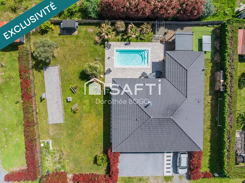 Le jardin paysagé, véritable havre de paix, invite à la détente. La piscine chauffée promet des instants de plaisir en famille ou entre amis, prolongeant l’esprit de vacances tout au long de l’année.