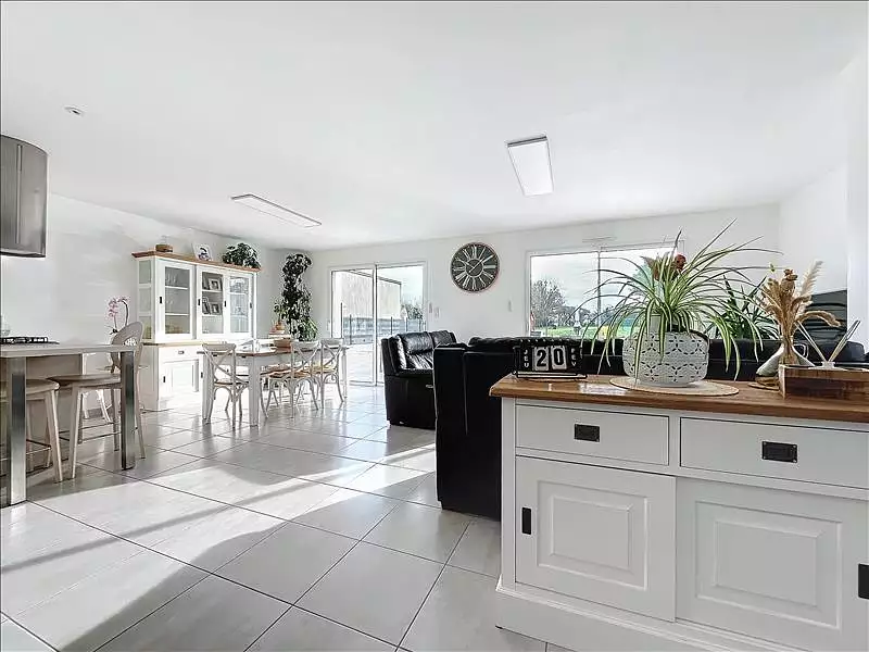 Proche du centre bourg offrant commerces et services, maison neuve de plain pied à 2 min, composée d'une pièce de vie avec cuisine américaine équipée et cellier. 2 chambres parentales avec salle d'eau et wc, chambre et bureau. SDB et WC. Un jardin de 3178 m2 avec piscine, abris jardin, boulodrome.