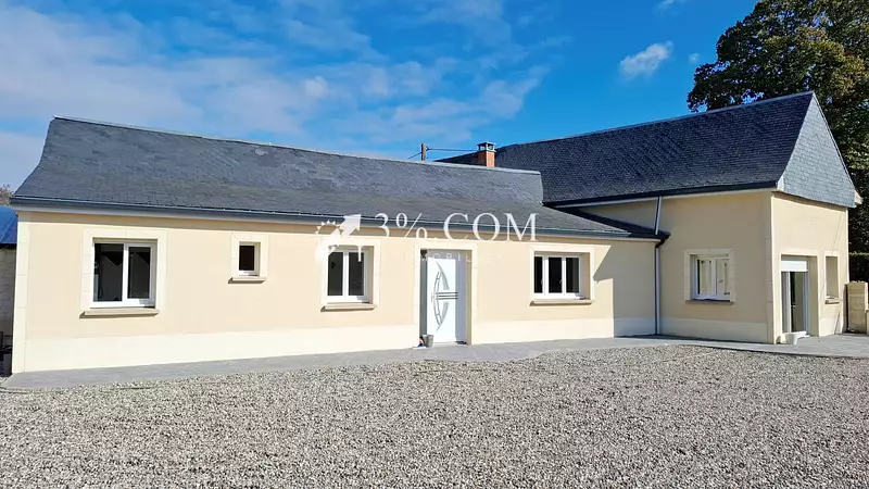 Proche Feuquières en Vimeu : maison de village ancienne entièrement rénovée. ZERO TRAVAUX ! - 2 CH de plain pied - 122 m2 hab. Dépendances. Grande surface en gravillons. Petite pelouse.