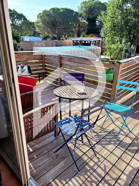 Dans un cadre champêtre de Fréjus, à proximité de plusieurs haras et à quelques pas de l'accès à l'autoroute. Ce bien immobilier, de type habitation légère, est doté d'une vaste terrasse en bois d'environ 35 m², de deux chalets équipés, d'une piscine hors sol et d'une cuisine d'été, le tout niché sur un terrain arboré d'environ 1000 m². L'habitation principale, totalisant près de 122 m², offre un environnement calme et serein. Elle dispose d'un généreux espace de vie d'environ 55 m², agrémenté d'un four à pizza exposé plein sud. Vous y trouverez également une grande chambre d'environ 17 m², pourvue d'une salle de bain attenante, ainsi que deux autres chambres, l'une d'entre elles ayant été aménagée en dressing. La cuisine équipée, dotée d'un îlot central d'environ 25 m², la salle d'eau avec douche à l'italienne, deux lavabos et des toilettes séparées avec fenêtre viennent compléter cet espace de vie confortable. Le chauffage est assuré par une climatisation réversible. Le terrain abrite également deux chalets, de 15 m² et 18 m² respectivement, chacun équipé d'un espace de vie, d'un coin cuisine et de toilettes. Une pièce supplémentaire d'environ 10 m², située à proximité de la cuisine d'été, offre une flexibilité d'utilisation selon vos besoins. En outre, une grande piscine hors sol de dimensions 7x3 complète ce cadre idyllique. Le terrain d'environ 1000 m² est entièrement clôturé, paysagé.