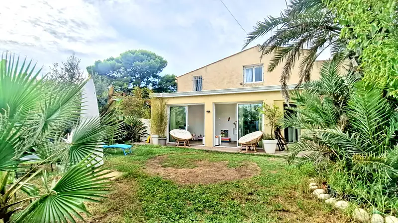 Édifiée sur une parcelle arborée de 381 m2, elle bénéficie d’une terrasse intimiste ouvrant sur un jardin verdoyant. Deux stationnements privés viennent parfaire ce bien.