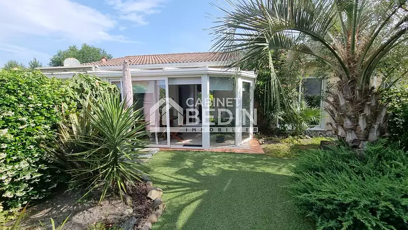 MIOS: maison contemporaine sur terrain arboré. Maison contemporaine au calme proche commerce, sur un terrain de 670m² arboré, clôturé comprenant : grand séjour/salon, cuisine semi-ouverte équipée, deux chambres avec placards, cellier, cave, salle d'eau, véranda. Climatisation reversible. Possibilité d'agrandissement permis existant. A voir rapidement.