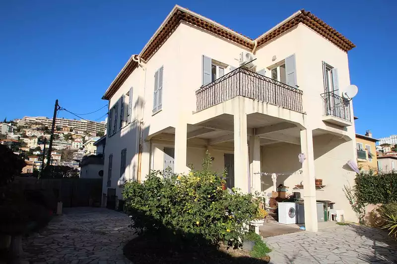 Villa bénéficiant d'un fort potentiel, actuellement composée de deux appartement 4P et 2P, un balcon avec vue panoramique ville et mer, une grande terrasse couverte pouvant être fermée en verrière, un jardin plat bien exposé.