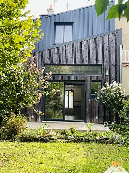 Myriam PIVARDIERE Immobilier vous propose une jolie maison en pierres, d’env. 120 m2 habitables, avec 4 chambres, rénovée et agrandie par une extension dans un style contemporain.