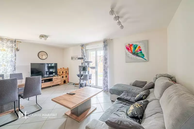 Dans un quartier calme, une maison individuelle de 2001 d'environ 122 m² comprenant: -au rez-de-chaussée: une cuisine équipée ouverte sur une pièce de vie spacieuse avec accès à une terrasse et au jardin, un dégagement, deux chambres, une salle d'eau, wc, et buanderie-chaufferie - à l'étage: une mezzanine, une chambre spacieuse avec rangements, une salle de bains avec wc, et deux autres chambres. Vous pourrez également découvrir un garage double avec porte motorisée, et un abri de jardin de 6m². Pas de travaux à prévoir ! Jardin arboré et clôturé ! Square habitat vous offre la garantie revente pendant 7 ans pour ce bien !