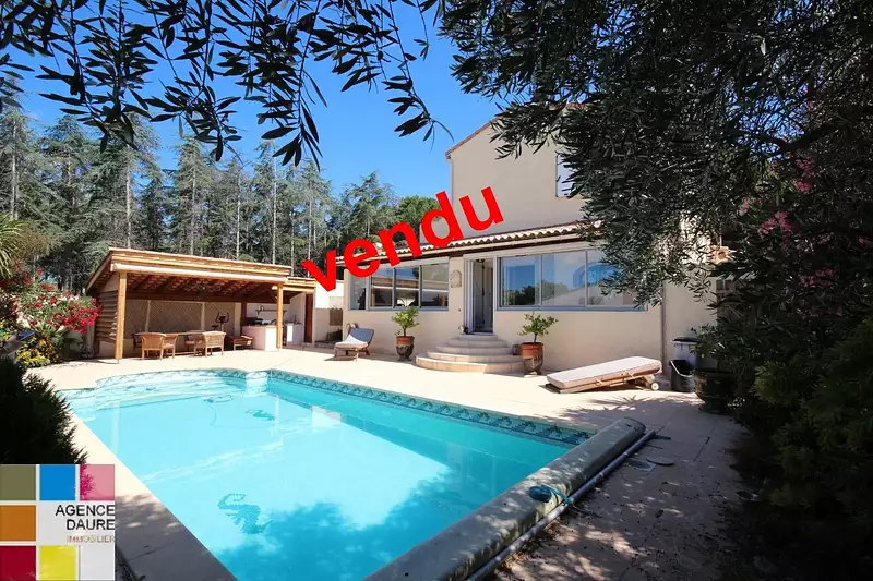 Dans un quartier résidentiel calme, en bordure de pinède et sans aucun vis-à-vis, découvrez cette villa implantée sur un agréable terrain arboré de 457 m² avec piscine. Les atouts :Séjour lumineux avec cheminée, cuisine indépendante équipée, 3 chambres avec placards + bureau,2 salles d'eau, 2 WC Cuisine dété idéale pour vos repas en plein air Garage + cave pour un maximum de rangement