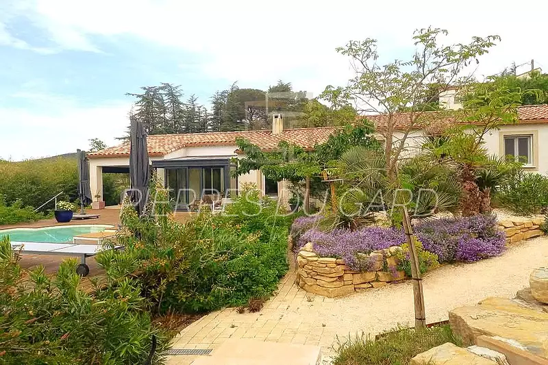 Conçue sur un seul niveau, cette demeure d'exception offre une vue dégagée et une exposition plein sud.