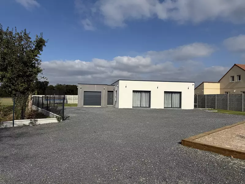 Maison comprenant: une entrée, un spacieux séjour ouvert sur une cuisine aménagée et entièrement équipée, deux chambres, une magnifique salle d'eau, suite parentale avec douche a l'italienne et un WC, buanderie,WC, terrain de pétanque et un garage.