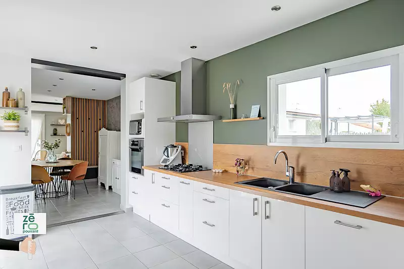 Le bien : Cette maison moderne de 123 m2 habitables, lumineuse et fonctionnelle, a été pensée pour offrir confort et praticité au quotidien. Salon-séjour chaleureux avec insert à granulés, ouvert sur l’extérieur, Cuisine contemporaine, aménagée et équipée, idéale pour les familles, Nombreuses baies vitrées donnant sur une vaste terrasse ensoleillée, Espace détente avec spa de nage dans un jardin clos et arboré.