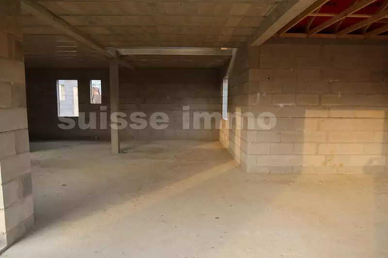 Ref BE6423. Au calme, commune de Berthelange, maison neuve contemporaine vendu hors d'eau, prévoir 80000 à 100000 euros en sus pour finir maison d'une surface habitable de 123 m2 et garage double de 38 m2, de plain-pied une pièce de vie de 45 m2, une chambre, salle d'eau, un wc séparé, cellier, à l'étage, trois chambres, une salle d'eau, un wc séparé, terrain de 650 m2 chauffage au sol pompe à chaleur, emplacement privilégié.