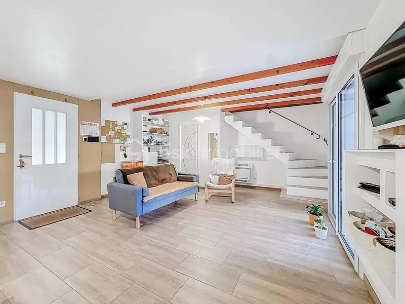 clim réversible, cette maison et entièrement rénovée avec gout, on trouve également un très grand garage de 45m²environ.