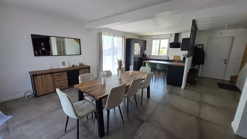 A 5 mn de GENESTON A SAISIR seulement chez Immo du Sud, dans le Bourg de St Philbert de Bouaine Maison Neuve de 123 m2 comprenant au rez-de-chaussée une entrée, un ensemble de 53 m2 composé d'une cuisine aménagée et équipée (plaques, hotte, lave-vaisselle, four et micro-ondes) ouverte sur le salon-séjour, wc et chaufferie. A l'étage palier desservant 4 chambres, salle d'eau, wc. Chauffage aérothermie Garage et jardin sur une parcelle de plus de 400 m2 Contacter le 0660685097 Les informations sur les risques auxquels ce bien est exposé sont disponibles sur le site Géorisques : www.georisques.gouv.fr La présente annonce immobilière a été rédigée sous la responsabilité éditoriale de Jérôme CHAILLEUX, mandataire indépendant en immobilier (sans détention de fonds), agent commercial de la SAS DG IMMO immatriculé au RSAC de NANTES titulaire de la carte de démarchage immobilier pour le compte de la société DG IMMO SAS Contact Jérôme CHAILLEUX au 0660685097 (4.36 % honoraires TTC à la charge de l'acquéreur.) JEROME CHAILLEUX (EI) Agent Commercial - Numéro RSAC : - NANTES.