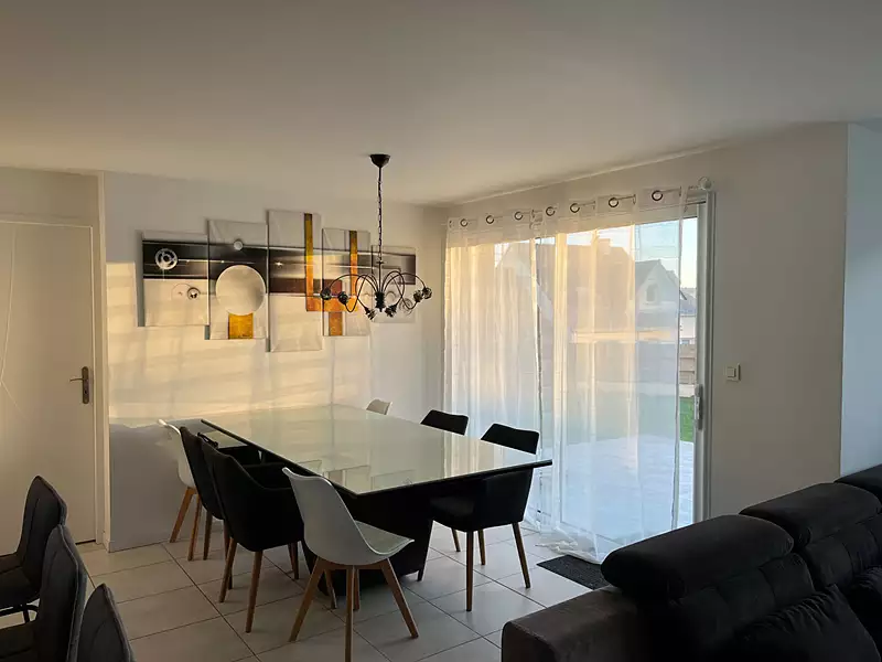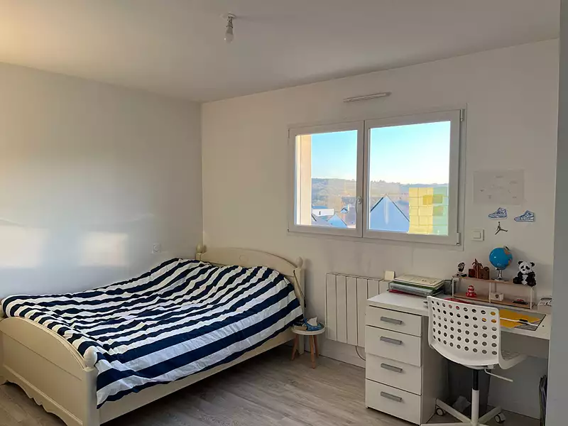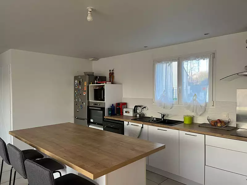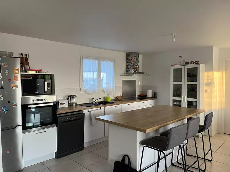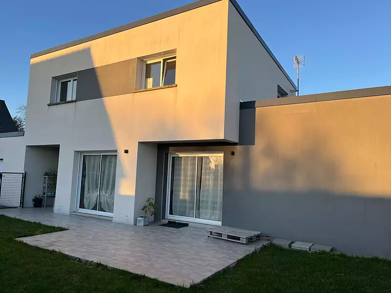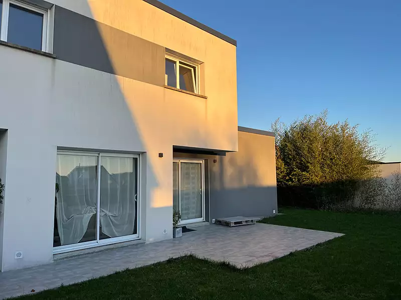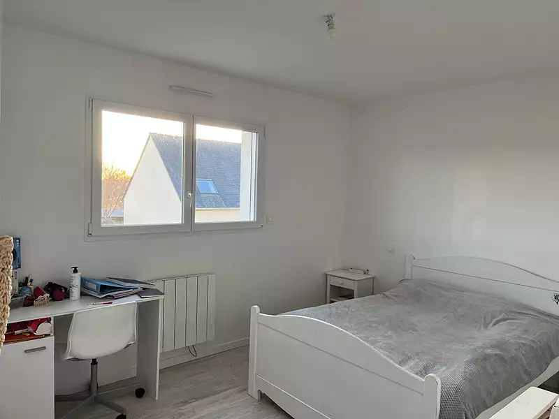BAISSE DE PRIX !! A vendre, Locminé, idéalement située proche du centre-ville, une résidence calme, maison de 2017 comprenant : - Au rez-de-chaussée : une entrée avec placard, une pièce de vie d'environ 40 m² donnant sur une terrasse exposée plein sud, une cuisine aménagée et équipée, une belle suite parentale avec dressing et salle d'eau. -A l'étage : un dégagement donnant sur 3 belles chambres avec placard, une salle de bains, des sanitaires. Le tout sur un terrain de 425 m² avec une terrasse, un garage et un abri de jardin à l'arrière de la maison. Pompe à chaleur. (4.00 % honoraires TTC à la charge de l'acquéreur.)