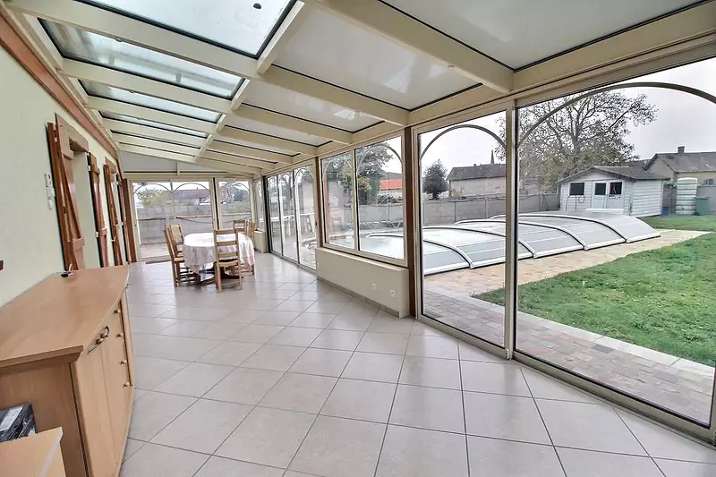 EXCLUSIVITE LES AGENCES UNIES Cette agréable maison familiale est édifiée sur un sous-sol total et offre de beaux volumes et un environnement calme. Elle se compose d'une entrée, d'un salon-séjour lumineux, d'une cuisine aménagée, de trois chambres, d'une salle d'eau et d'un WC indépendant. Vous profiterez également d'une grande véranda d'environ 39 m², véritable pièce de vie supplémentaire ouverte sur le jardin et la piscine Le sous-sol total comprend garage, atelier et buanderie... Un garage indépendant en plus et un second garage attenant avec mezzanine complètent l'ensemble. A l'extérieur, vous apprécierez un terrain clos d'environ 1 000 m² avec piscine couverte, idéal pour les beaux jours. Chauffage central au gaz de ville par radiateur dans la maison et au sol dans le vérandas. Situation recherchée entre Nogent-le-Roi et Houdan, avec accès rapide à la RN12. EXCLUSIVITE LES AGENCES UNIES BAREME D HONORAIRES SUR DEMANDE