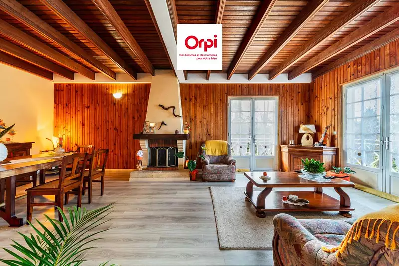 Cette propriété de 123 m² offre un cadre de vie exceptionnel avec ses 4 chambres spacieuses avec placard en bois encastré , son salon lumineux de 30 m2 avec cheminée en pierre, ainsi qu'une cuisine équipée.