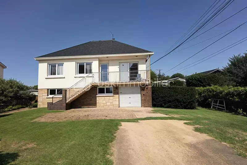 À l'étage, rénové en 2014, on découvre une pièce de vie lumineuse avec salon et cuisine aménagée ouverte. Un couloir mène à 3 chambres, une salle d'eau et un WC séparé.