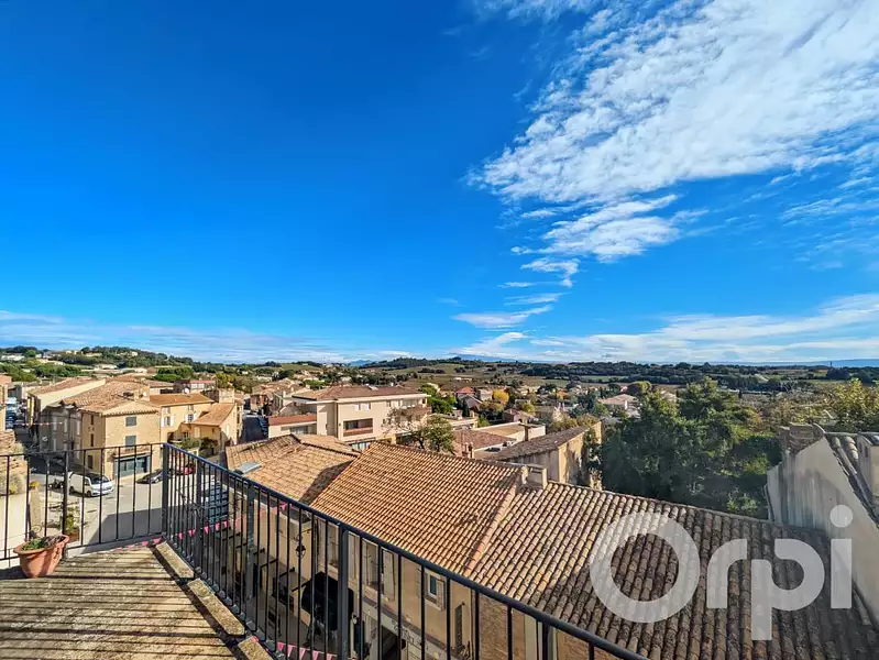 Une superbe terrasse de 62 m²dominant le village et offrant une vue imprenable sur le château et les toits du village. Un espace unique, idéal pour profiter des belles journées ensoleillées, recevoir ses proches ou simplement admirer le coucher de soleil sur les collines environnantes.