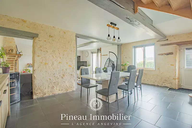 - VIDEO DISPONIBLE SUR DEMANDE - Maison familiale de charme - 3 chambres - Vie de plain pied Située dans un environnement calme et recherché, cette belle maison entièrement rénovée avec goût combine le charme de l'ancien et le confort moderne. Parfaite pour une famille, elle offre des volumes généreux, une belle luminosité et une ambiance chaleureuse. Au rez-de-chaussée, vous serez accueilli par une vaste pièce de vie au style mêlant pierres apparentes, poutres en bois et grandes ouvertures, offrant une superbe luminosité. La cuisine ouverte et équipée donne sur un espace salle à manger convivial. Le rez-de-chaussée comprend également une chambre et une salle d'eau avec sa douche italienne. A l'étage un grand palier lumineux dessert deux chambres et peut facilement faire office de bureau ou coin lecture. L'une des chambres, spacieuse et fonctionnelle, dispose de sa salle de bain privative ainsi que de nombreux rangements intégrés. Le bien est équipé d'un système de chauffage par géothermie, garantissant confort thermique et économies d'énergie toute l'année. Le tout est situé sur une parcelle de 2340 m², offrant un espace extérieur agréable et paisible. Pour plus d'informations sur ce bien, notre agence reste à votre entière disposition. -VIDEO DISPONIBLE SUR DEMANDE - Les informations sur les risques auxquels ce bien est exposé sont disponibles sur le site Géorisques : www.georisques.gouv.fr.v (6.99 % honoraires TTC à la charge de l'acquéreur.) Julien JAUNAY (EI) Agent Commercial - Numéro RSAC : 920588787 - ANGERS.