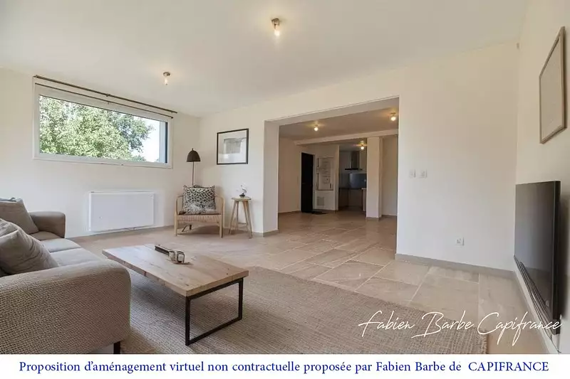 Grand salon lumineux avec accès à la terrasse exposée sud
