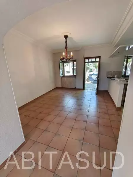 Véranda 21.55 m² carrelée WC séparé 1 m² carrelé accès laboratoire et jardin
