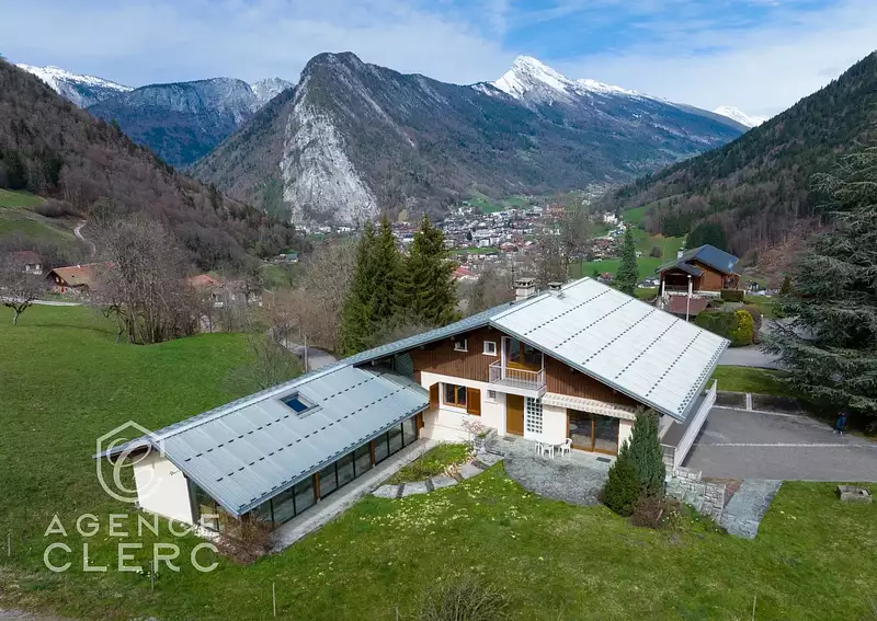 Thônes, secteur Chamoissière, à 45 minutes de l'aéroport de Genève et 15 minutes des stations de ski et du lac d'Annecy : maison de 124 m² habitables soit 377 m² plancher,3 chambres, piscine de 6*12 m, sur un terrain arboré de 1.856 m² dont 100 m² constructibles. Proche commodités, vue dégagée sur le Lachat et le Sulens, clame, 2 garages, beau potentiel