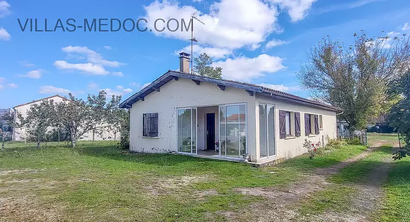 A deux pas du centre, maison de plain pied composée d'une entrée/véranda, dégagement desservant un salon, une cuisine, quatre chambres, une salle d'eau, un wc et un cellier. Garage attenant de 23 m². Le tout sur terrain de 1200 m² . Terrain constructible et raccordé au tout à l'égout. A découvrir - Exclusivité Villas Médoc (6.00 % honoraires TTC à la charge de l'acquéreur.)