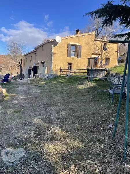 Cette bâtisse se compose en RDC d'une pièce à vivre et d'une cuisine. A l'étage, un petit et un grand salon, deux chambres dont une avec mezzanine, une salle d'eau et des toilettes. Chauffage poêle à bois et insert, ne pas tenir compte donc du coup de l'énergie mentionné ci-dessous sur le diagnostic, celui-ci étant basé uniquement sur l'électricité.