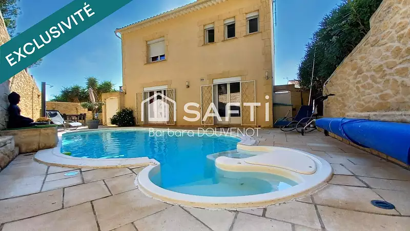 Dans un joli quartier verdoyant de Béziers, au calme, je vous invite à découvrir cette maison des années 80 sans travaux de 125 m² sur 306 m² de terrain paysagé. A l'extérieur sur 4 faces, on trouve une allée de stationnement devant le garage de 40 m², un jardin coquet et bien entretenu, une piscine de 8x3m avec spa intégré et un espace repas sans vis-à-vis.