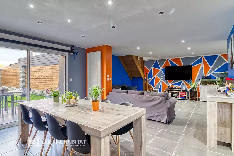 Square Habitat vous propose en exclusivité, cette maison sans aucun travaux à prévoir. Elle est composée au rez-de-chaussée d'un beau séjour ouvert sur la cuisine aménagée, un WC et une buanderie. A l'étage, vous trouverez trois chambres, un bureau et une grande salle de bains avec douche et baignoire. Pour les combles, une pièce de 20m² y est aménagée en salle de jeux. A l'extérieur, un jardin de plus de 100m² avec piscine et un parking privatif.
