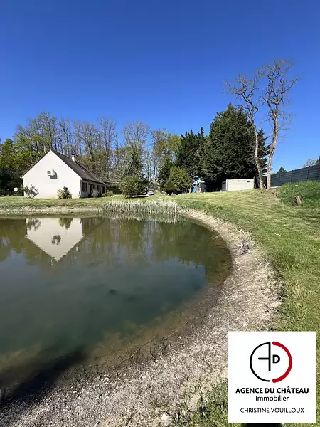 Belle rénovation pour cette maison située sur un terrain de 3 552 m² avec plan d'eau alimenté par une source, à proximité immédiate de la forêt d'Orléans.Elle offre une vaste pièce de vie lumineuse avec cuisine américaine équipée, poêle à bois et à granulés.Au rez-de-chaussée, une suite parentale avec dressing, salle d'eau et WC.À l'étage, deux chambres, une salle de bains et un WC séparé.Garage attenant. Environnement calme et verdoyant. 3 carports + dépendance.