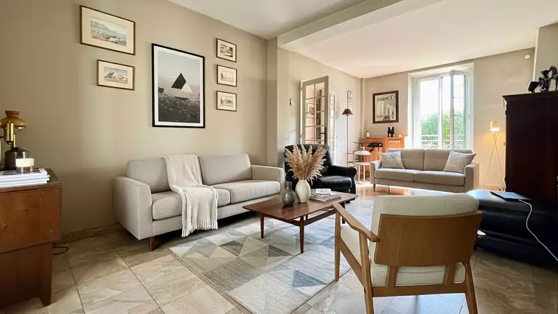 Belle MAISON des années 1870 sur 3 niveaux, avec cave semi-total et sur un terrain clos de +900m2. Cette maison offre de beaux volumes avec un séjour-double, un petit salon et une cuisiné séparée. La véranda s'ouvre sur le grand jardin arboré et donne accès à la cave et au double garage. Le 1er niveau s'ouvre sur un pallier avec placard qui dessert 3 chambres et une salle d'eau/wc. Et enfin, les 2 chambres du second niveau offrent un potentiel intéressant (suite parentale, dressing, ou bureau,...). Maison familiale, proches de toutes commodités à pieds. Atouts : triple vitrage et jardin sans vis-à-vis...le reste est à découvrir lors d'une visite !