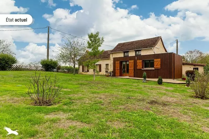 Périgourdine composée au rez de chaussée d'un salon avec cheminée insert, une salle à manger, une pièce de vie pouvant être transformée en 3ème chambre, une cuisine, une chambre, une salle d'eau. A l'étage, une chambre avec rangements et sa salle d'eau. Un garage, un atelier, carport attenants sur 2061m² de terrain clos. Au calme Proposition d'aménagement virtuel non contractuelle en dernière photo.