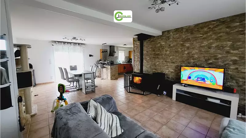 La maison est équipée de panneaux photovoltaïques ainsi que de deux garages.