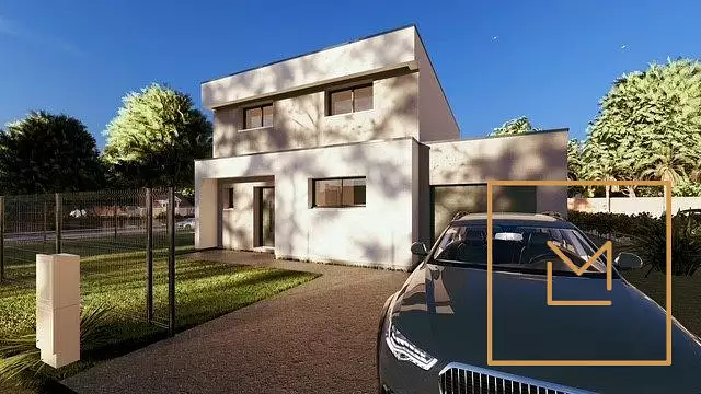 Maison neuve de 2025 de 6PP comprenant : hall d'entrée, séjour-salon avec toit cathédrale de 46m², cuisine am et équip, chambre, salle d'eau.
