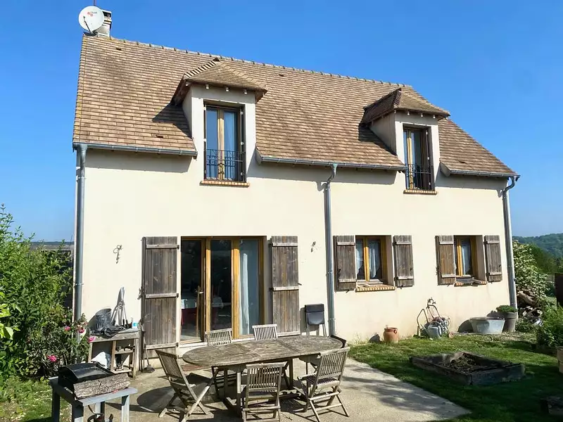 Dans la charmant village de Guerville, située à 10 mn en voiture de la future gare RER menant à PARIS/LA DEFENSE, belle maison traditionnelle édifiée sur cave totale, offrant : cuisine équipée ouverte sur séjour double avec poêle à bois, 5 chambres dont une en rez-de-chaussée, salle de bains, salle d'eau, cellier. Terrain de 800 m². Pour amateur de calme.