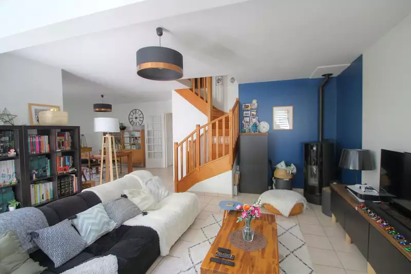 Idéalement située dans un lotissement calme, cette maison lumineuse offre une entrée, un spacieux salon-séjour, cuisine aménagée et équipée, 4 chambres dont 1 suite au rez-de-chaussée avec salle d'eau privative. Salle de bain à l'étage, terrasse et jardinet cosy. À seulement 5 min à pied des commerces et écoles !