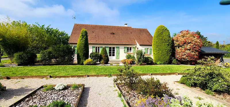 A seulement 1h45 de Paris et 10 Min La Ferté Bernard. Découvrez cette belle maison de 2002 sans aucun travaux à prévoir. Elle se compose d'une entrée d'une cuisine aménagée équipée ouverte sur un espace salle à manger salon lumineux 3 chambres d'un WC séparé d'une salle de bain avec douche d'une buanderie et d'une cave. Un studio indépendant d'environ 30 m2 complète ce bien : Il comprend une entrée une salle d'eau avec WC et à l'étage une chambre idéale pour accueillir une famille amis ou envisager un revenu locatif. Côté extérieur vous profiterez d'une agréable terrasse d'un portail électrique d'un terrain clos et arboré sur une partie et une autre partie clôturée prête à accueillir des animaux. Le tout sur un terrain de 4310 m2 offrant un cadre de vie paisible et verdoyant . Une opportunité rare à découvrir sans tarder. Contacter Aurélie au O6 12 23 54 35 (5.94 % honoraires TTC à la charge de l'acquéreur.)