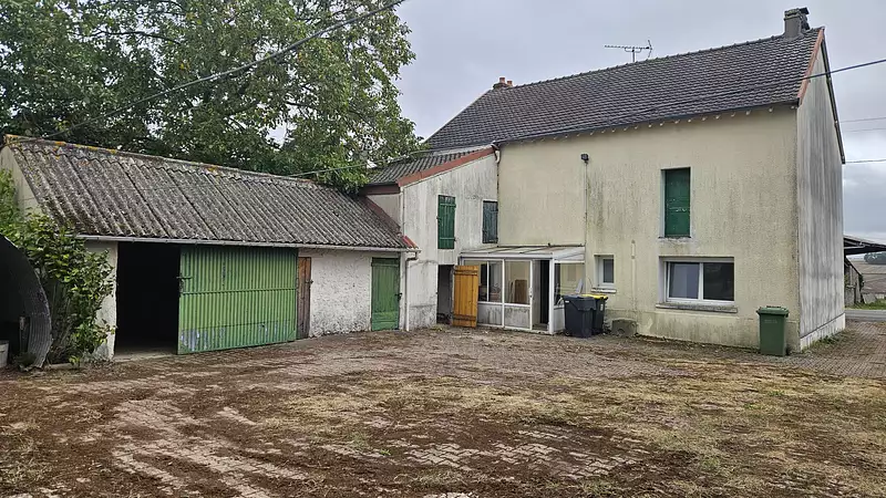 En Exclusivité : A faire revivre, FERMETTE indépendante sur 1200m² de Terrain. Disposant d'une Entrée, Cuisine de 16m², Séjour de 20m² avec cheminée insert, SDB, SDE avec douche, 2 wc, Buanderie, 2 Chambres au RDC et 3 Chambres à l'étage (dont 2 en enfilade), Chaufferie/Atelier de 40m². Garage 1VL. Grange de 41m² sur 2 niveaux + 46m² supplémentaires. De beaux Volumes. ... RARE ...