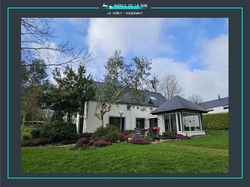Située au calme d'une impasse, au centre de LA FORET-FOUESNANT, laissez vous séduire par cette MAISON D'ARCHITECTE construite sur un magnifique terrain arboré de 1500m2, préservé du vis à vis.