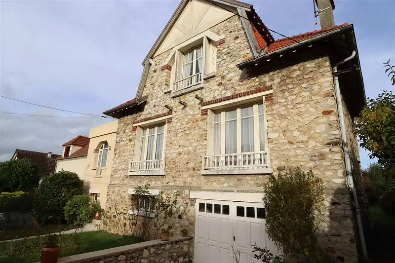 Exclusivité. LAGNY SUR MARNE - A 5 mn à pied du centre ville, dans quartier calme et résidentiel, belle Maison en Pierre apparente d'environ 125 m² habitables, élevée sur sous-sol total dont garage et comprenant en Rdc ; entrée, séjour-salle à manger de 34 m², cuisine, w.c, dressing, chambre et salle de bains. A l'étage ; palier distibuant 2 chambres avec rgts en sous-pente, salle de bains avec w.c. L'ensemble édifié sur un beau terrain clos de 554 m².